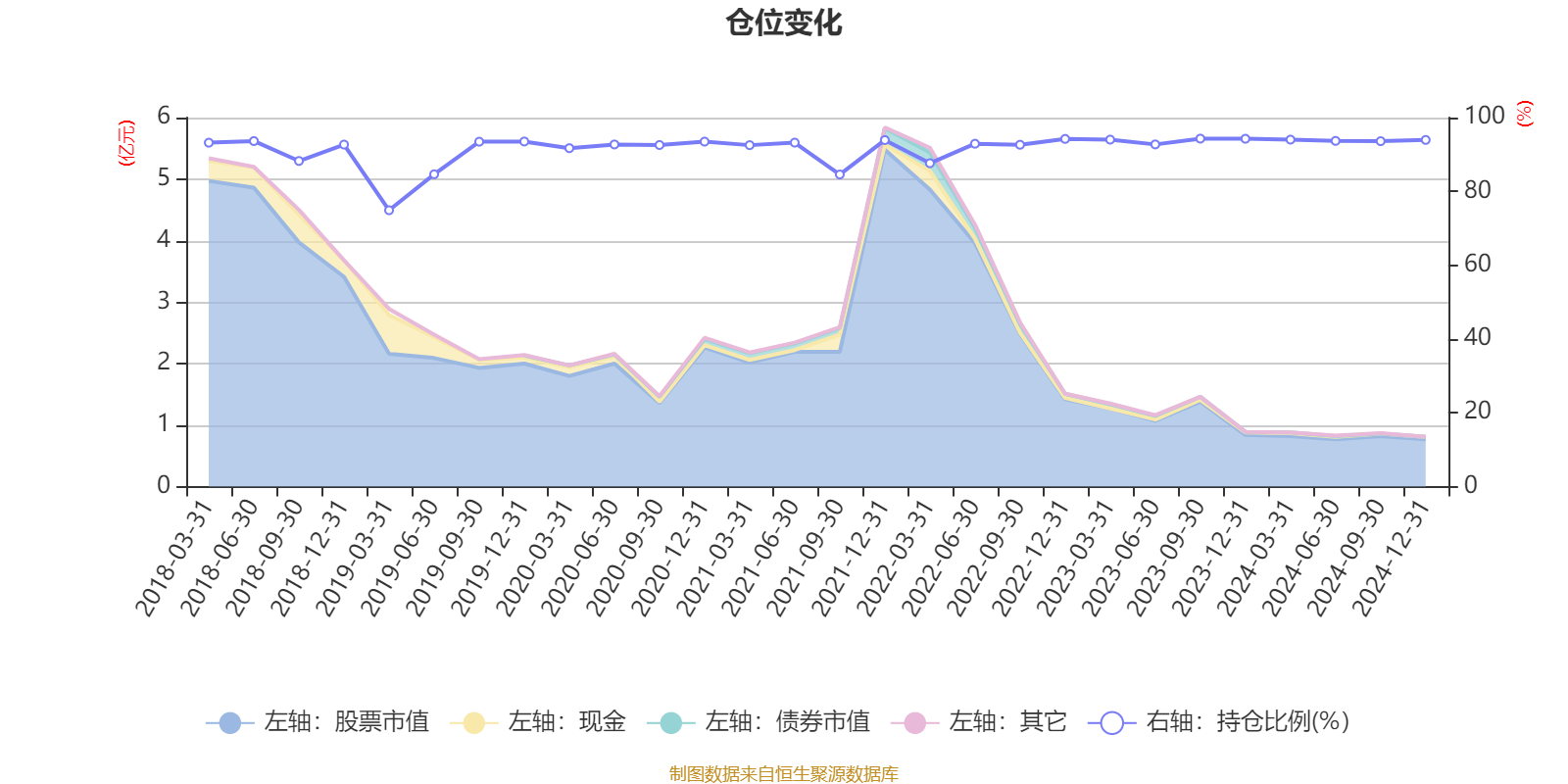 据定期报告数据统计,近三年平均股票仓位为93.17%,同类平均为79.88%。2023年三季度末基金达到94.3%的最高仓位,2019年一季度末最低,为74.89%。