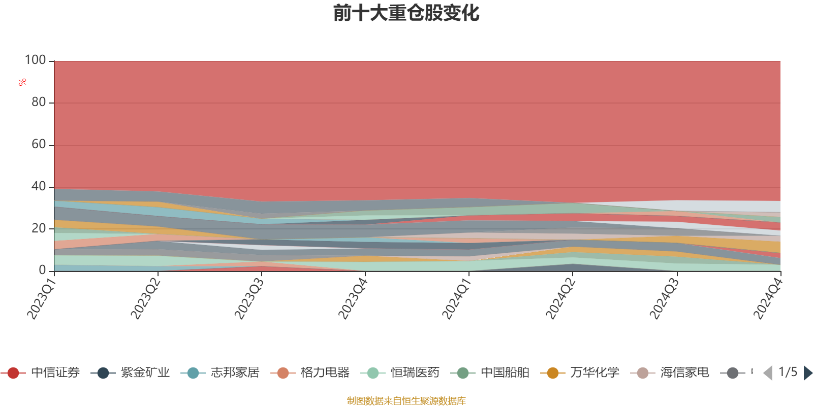 截至2024年末,基金十大重仓股分别是宁德时代、新华保险、招商银行、美的集团、恒瑞医药、中联重科、沪电股份、立讯精密、恺英网络、百济神州。