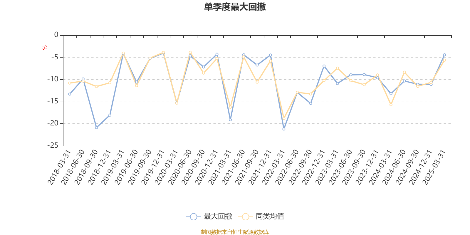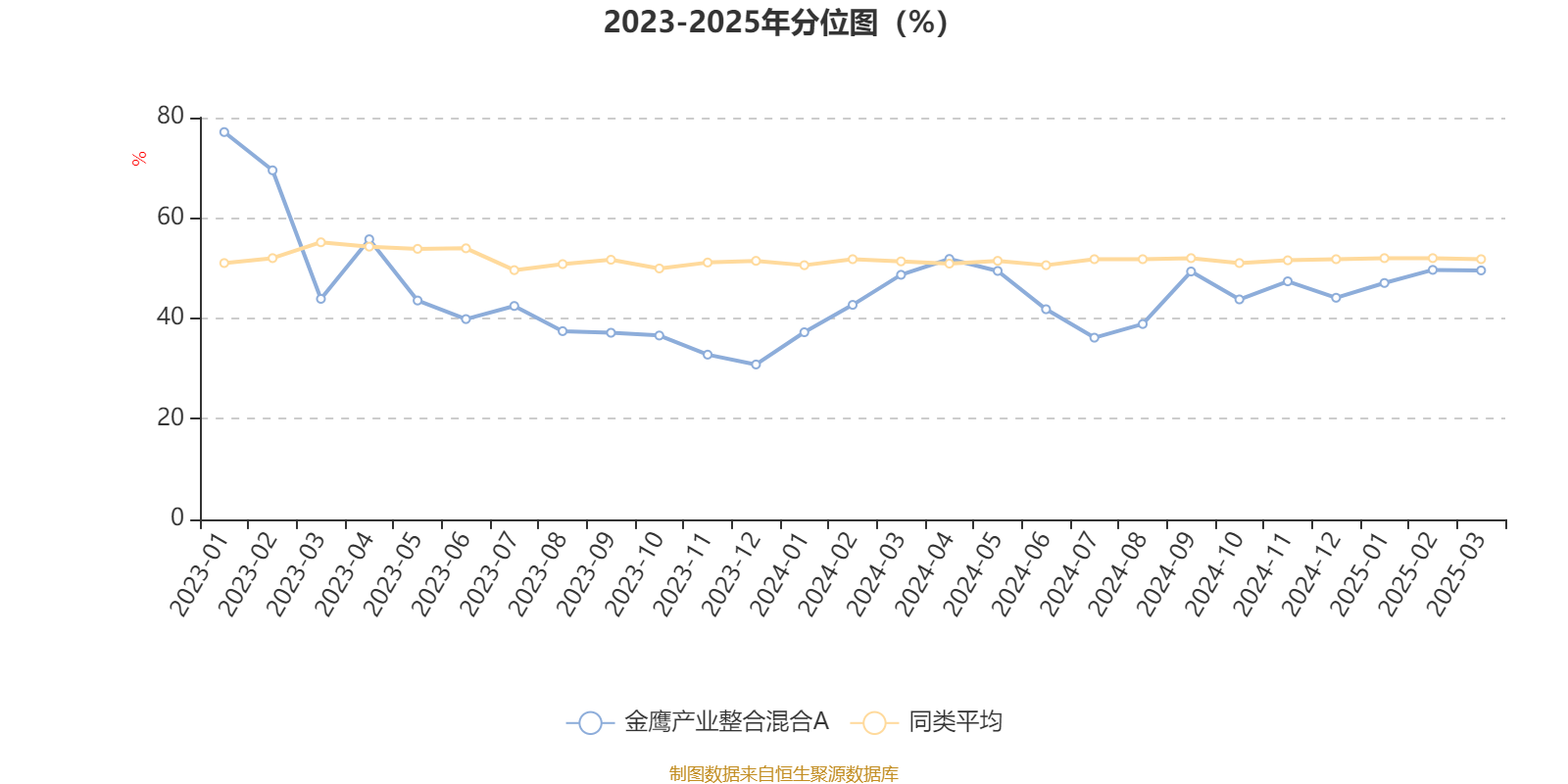 通过所选区间该基金净值增长率分位图,可以观察该基金与同类基金业绩比较情况。图为坐标原点到区间内某时点的净值增长率在同类基金中的分位数。